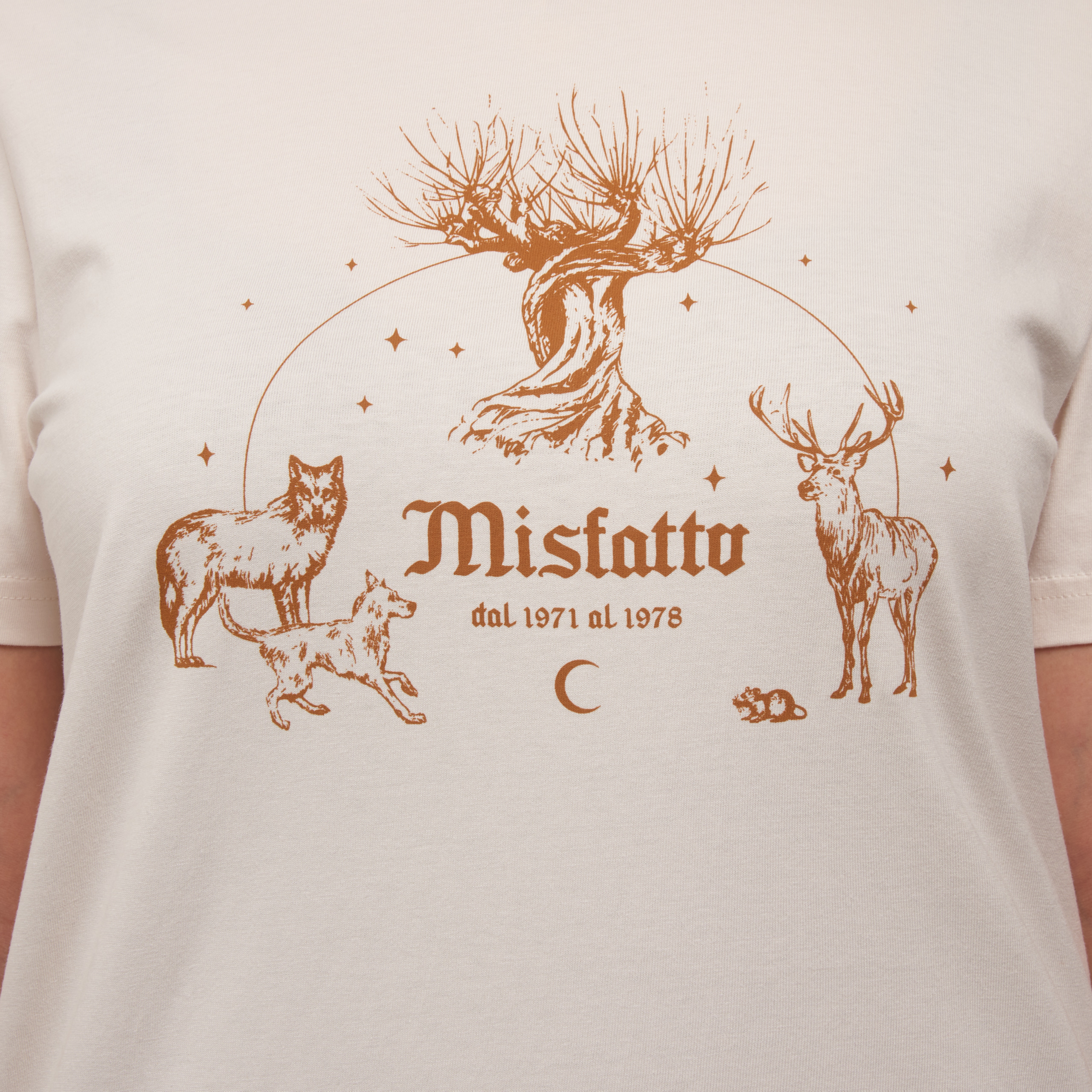 T-shirt con una stampa molto bella e un colore neutro e versatile.