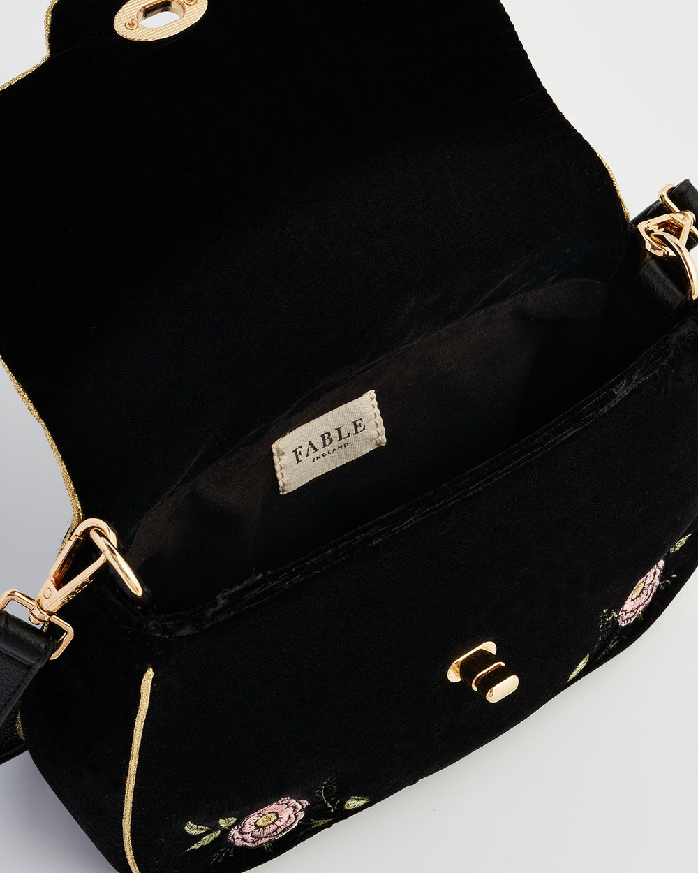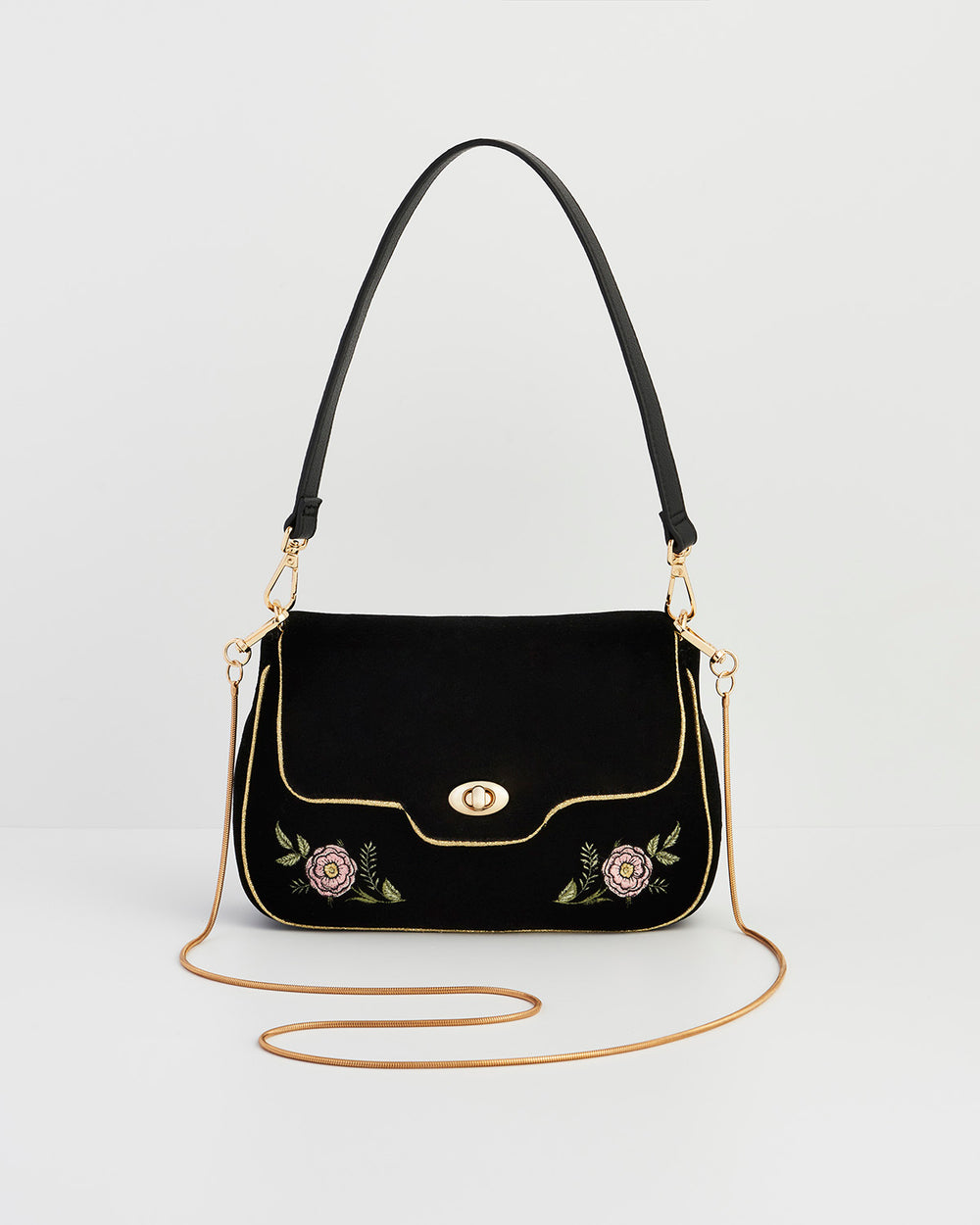 • Realizzata in classico nero, con motivi floreali ricamati che aggiungono femminilità e carattere.