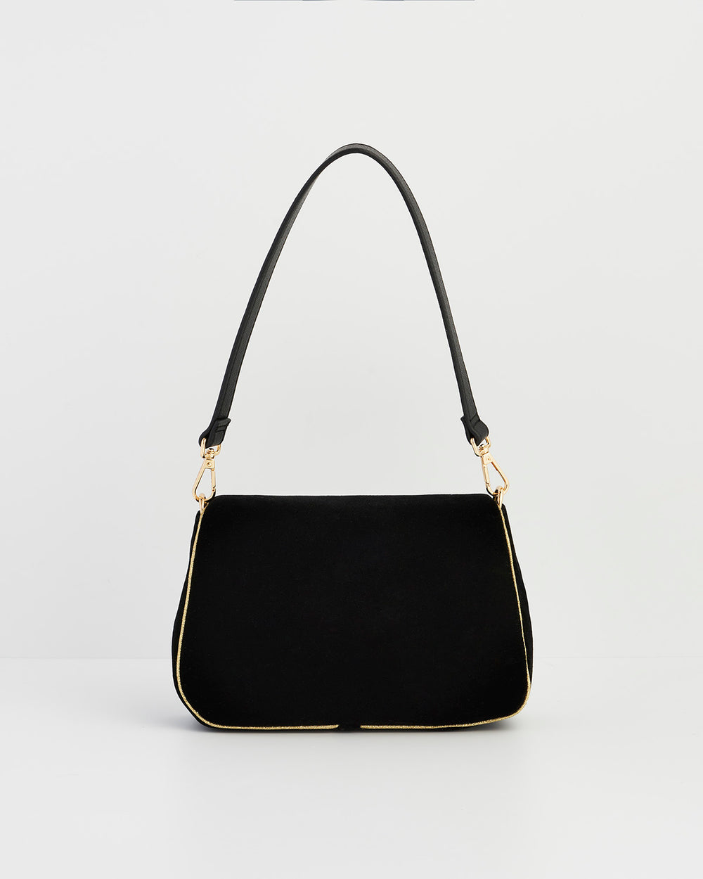 • Chiusura e profili in oro lucido dal sapore rétro.