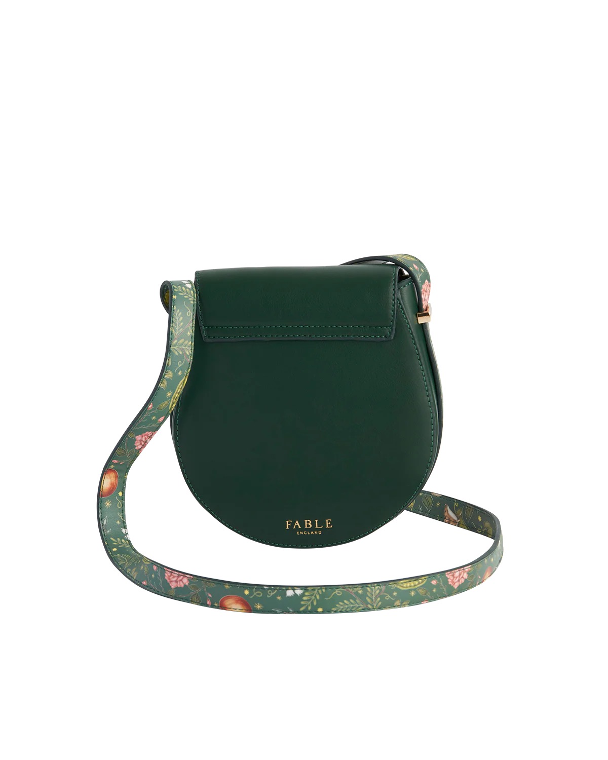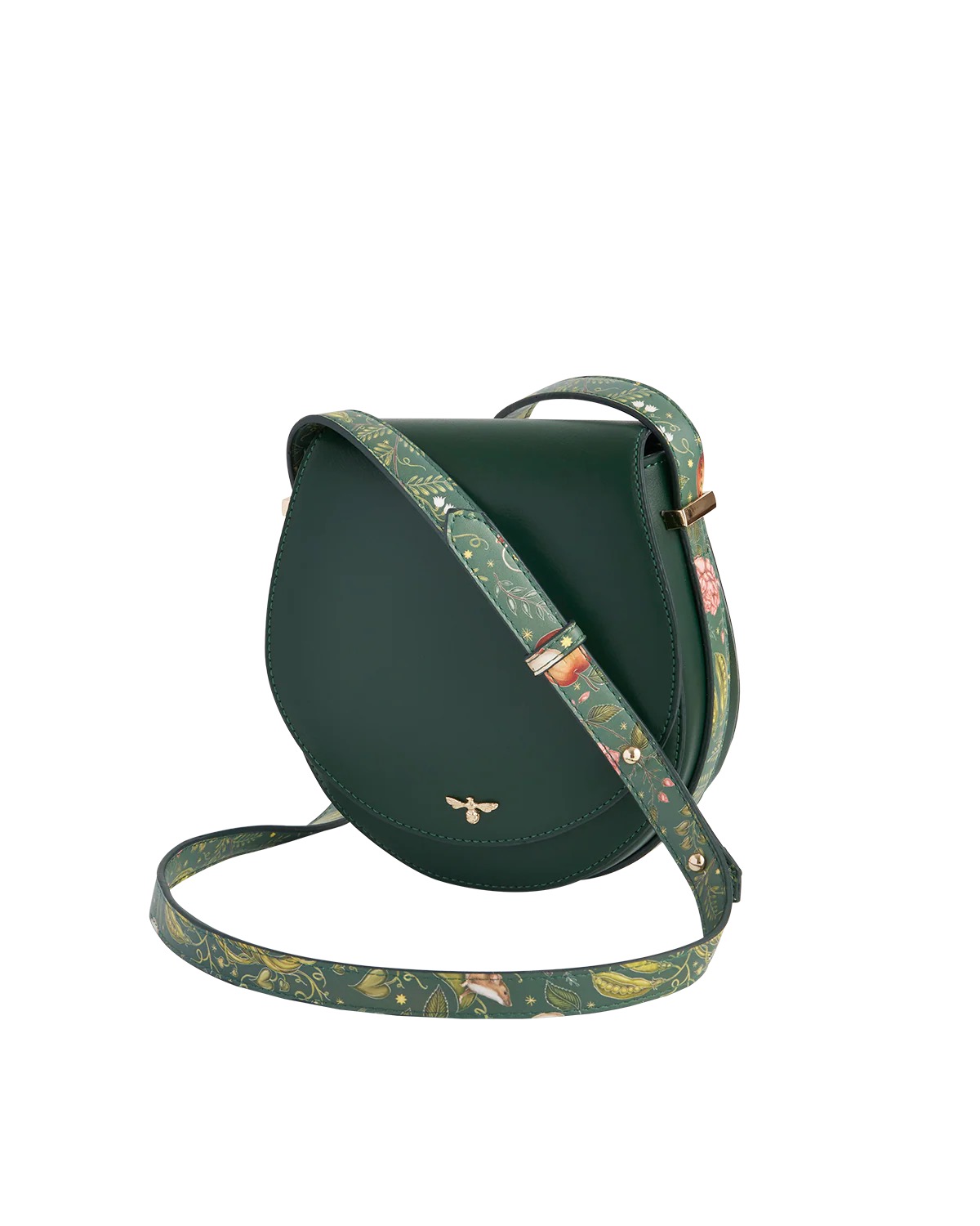 Un modello classico ma con un tocco davvero speciale. La silhouette curva richiama le tradizionali “saddle bag” equestri, ma qui c’è un twist magico: la stampa applicata sulla tracolla.