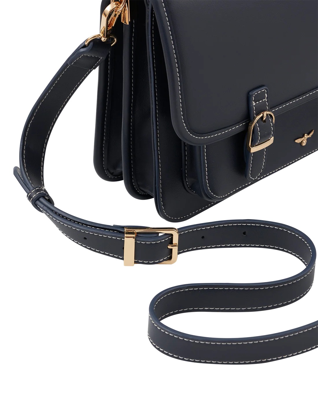 La silhouette strutturata si ispira ai modelli vintage, con eleganti fibbie dorate e una tracolla regolabile che garantisce comfort e libertà di movimento tutto il giorno.
