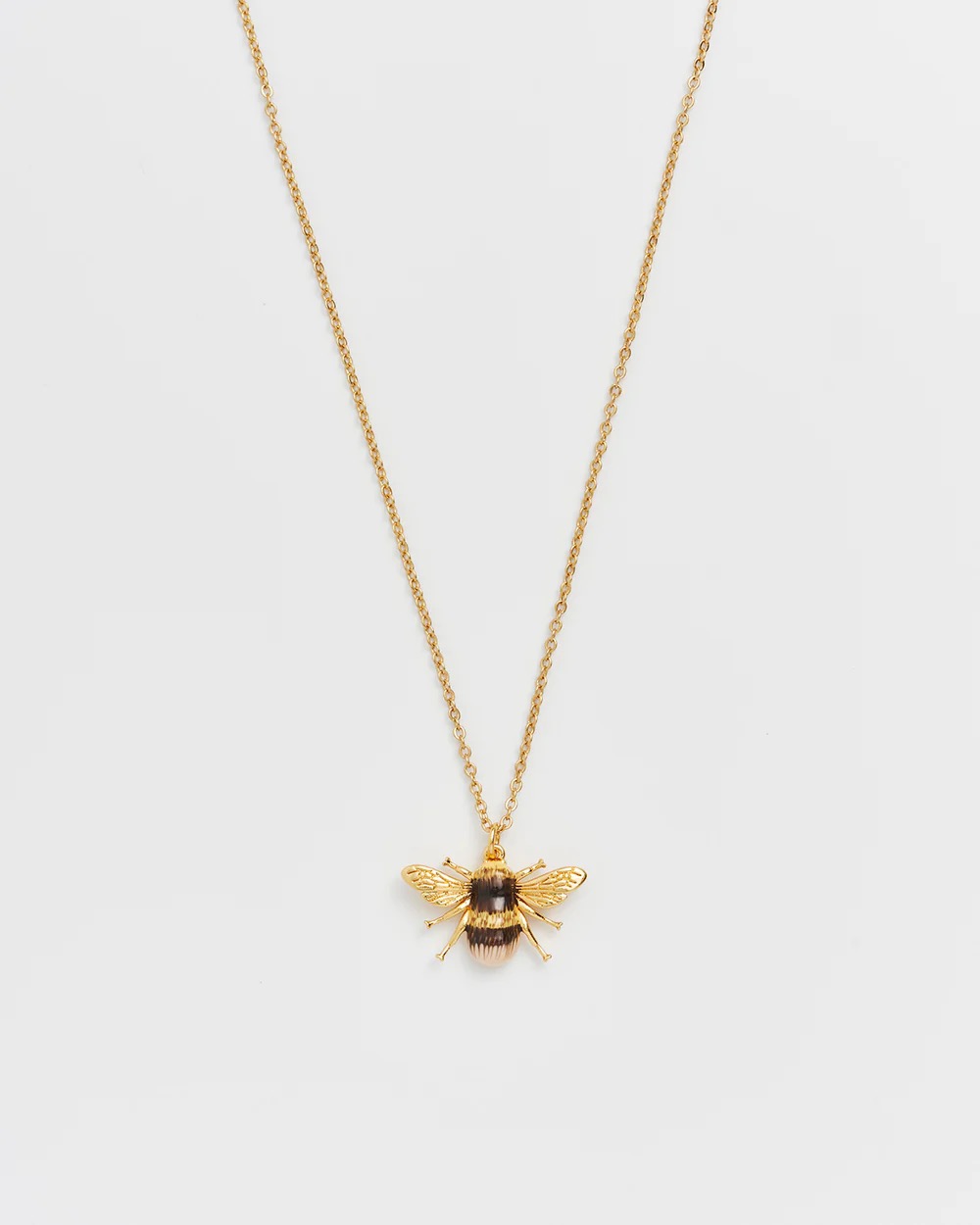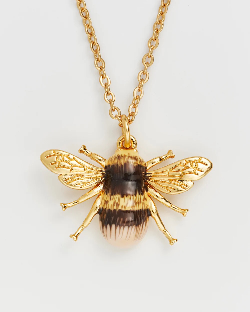 La Collana Ape è un gioiello senza tempo, ispirato alla bellezza delicata del mondo naturale. Il ciondolo a forma di ape, dipinto a mano con raffinati dettagli in smalto, è abbinato a una catena placcata oro 22 carati effetto vissuto, per un risultato elegante e leggermente fiabesco.