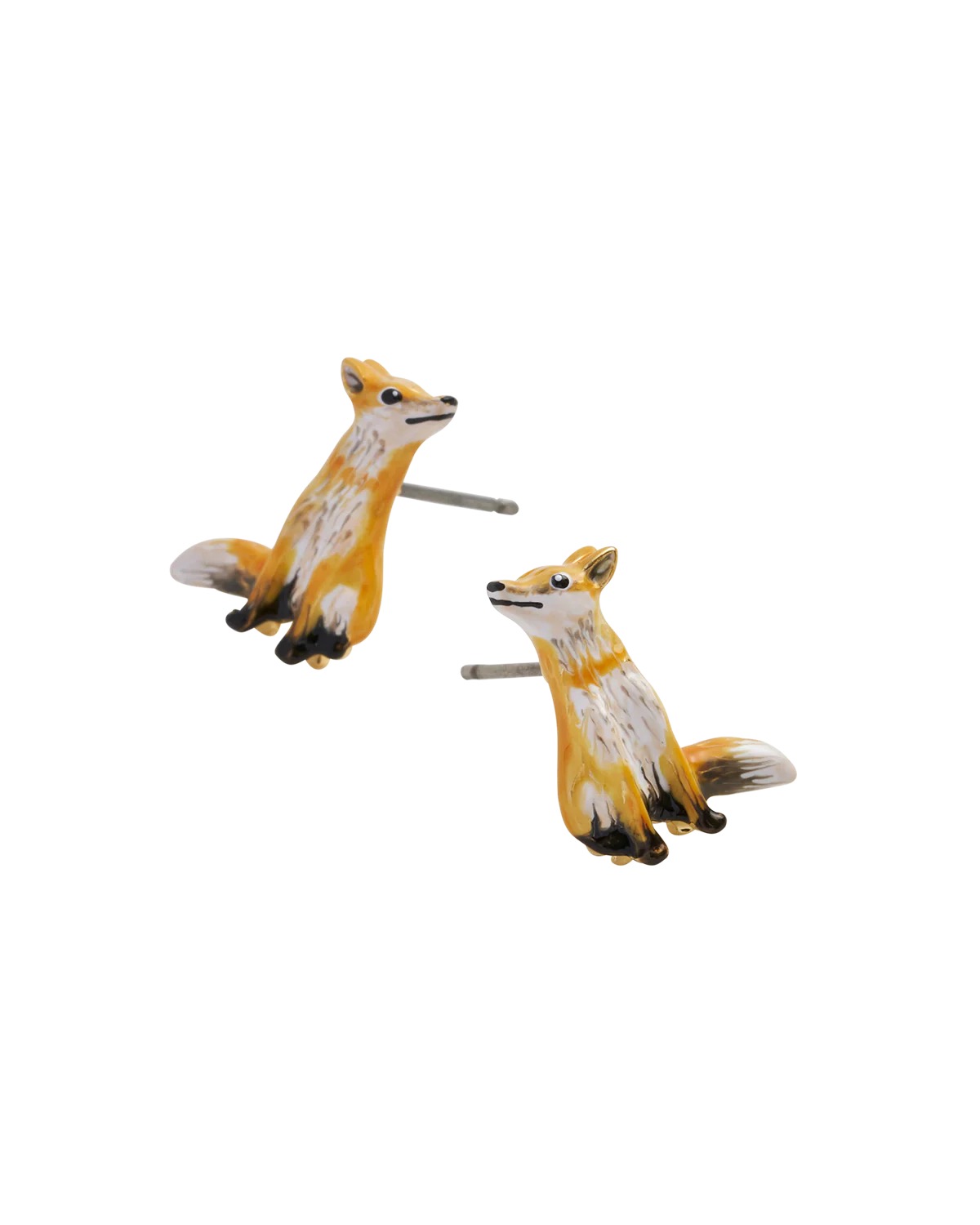 Impreziosisci le tue orecchie con questo modello di orecchini composto da due piccole volpi, ricco di dettagli dal nasino fino alla coda finemente lavorata. Una coppia adorabile, perfetta come regalo per chi ama la natura e le avventure nel bosco.