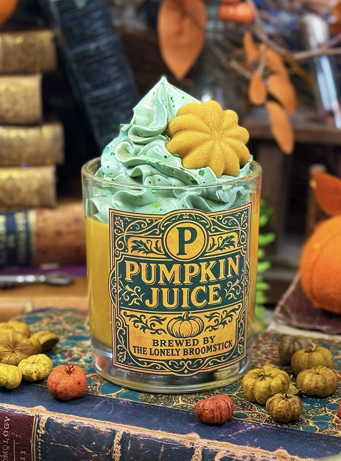 Ti presentiamo la Candela Pumpkin Juice, ispirata alla celebre bevanda speziata alla zucca amata durante i grandi banchetti magici.