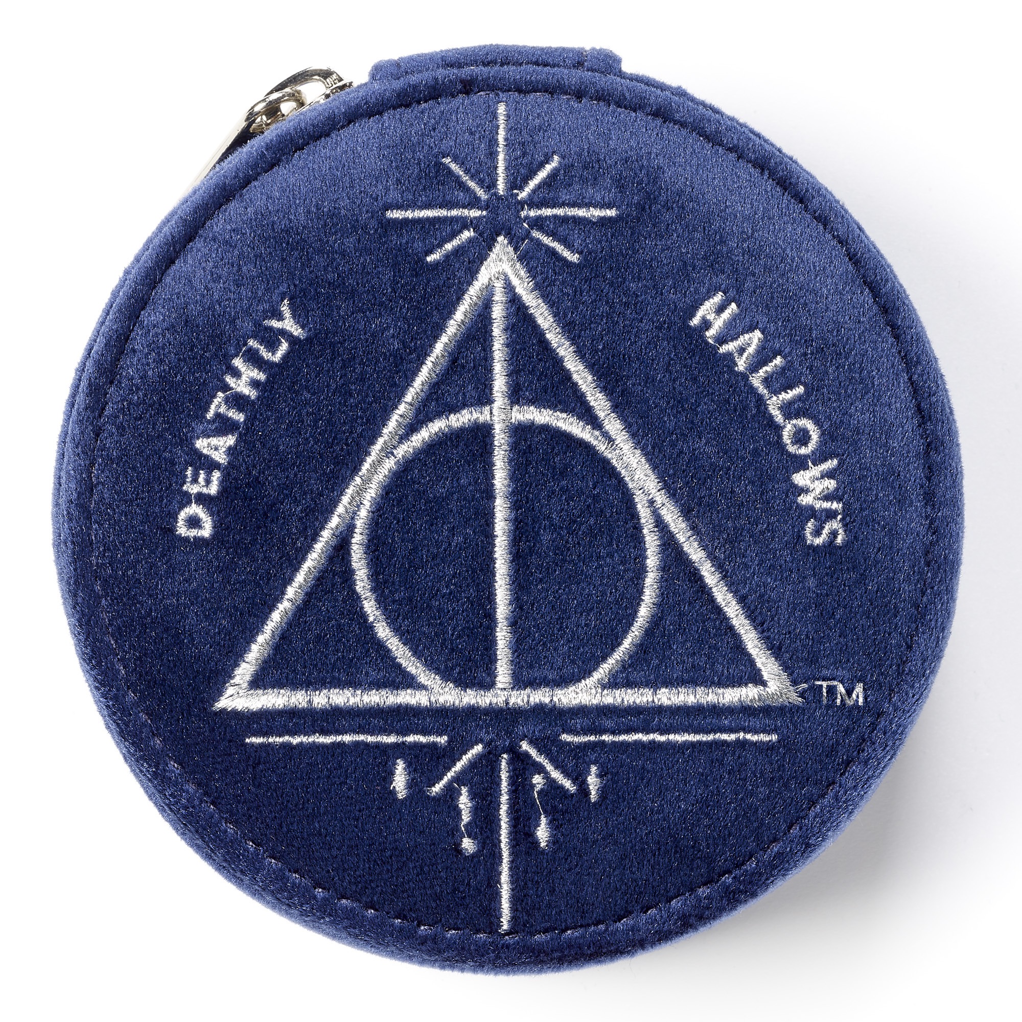 Elegante e misterioso, questo portagioie ispirato ai Doni della Morte è dedicato a chi conosce il vero significato dell’equilibrio tra potere, destino e scelta. Il rivestimento effetto velluto blu intenso e il ricamo argentato lo rendono un accessorio raffinato e carico di simbolismo.